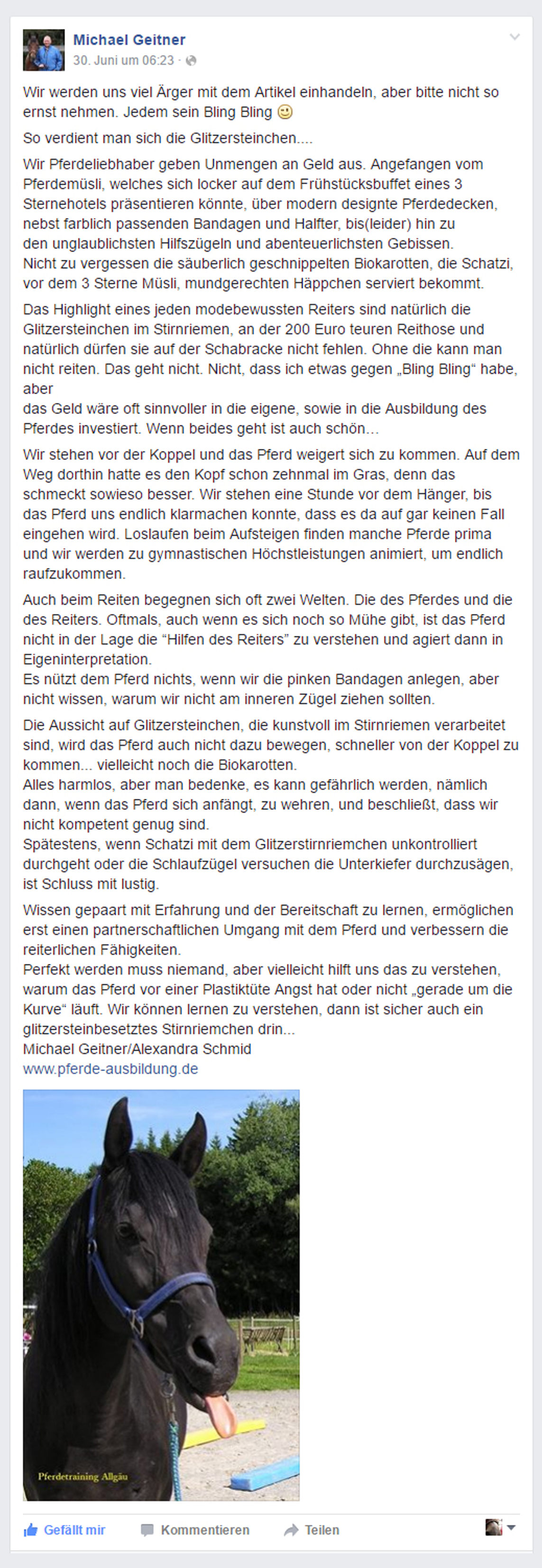 Hier mal ein Interessanter Beitrag von Michael Geitner,einer der bekanntesten und erfolgreichsten Pferdetrainer Deutschlands.